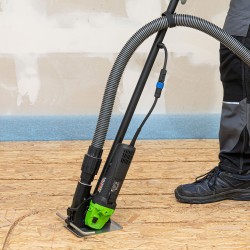 The EHF 1400 router is a highly efficient machine designed for dust-free milling of slots in wooden dry screed floors, making it ideal for the cost effective installation of dry board underfloor heating systems. Engineered for both precision and versatility, it can also be used as a handheld tool in corner and edge areas where guided operation is not possible.
