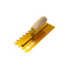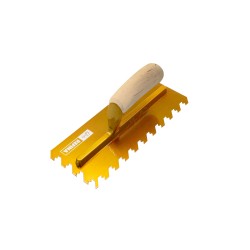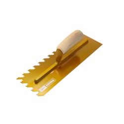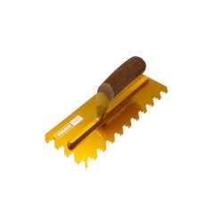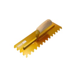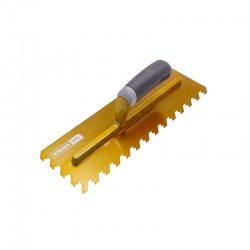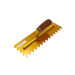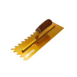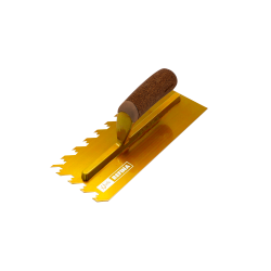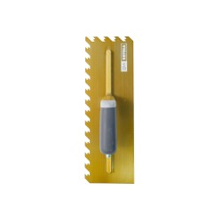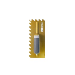 The 12mm NotchTile™ is a gold coloured professional adhesive spreading trowel, which features a distinctive laser cut two-step H45 notch pattern that is specifically designed to undercut adhesives and allow ridges to collapse with less pressure and give maximum coverage.