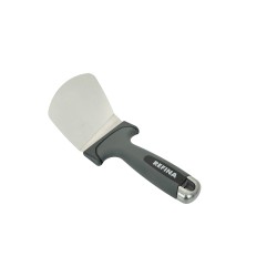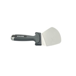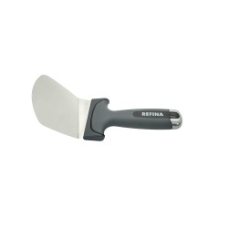 REFINA Angled Bucket Scoop Spatula are the perfect hand tool for easily collecting material from your tub or bucket. Manufactured with a rounded stainless steel blade that allows for scraping the side of the bucket, the blade is also bent at an angle to ensure material stays on the spatula knife for easy pick-up. This design helps to collect as much material as possible and even reach right to the bottom of the bucket with ease. Paired with a soft grip handle and aluminium impact end fitting with a handy eyelet, the REFINA bucket scoop spatula knife is a must have for any tool kit.
