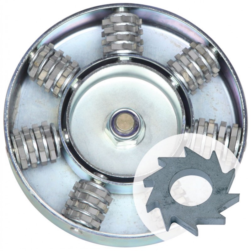 Scabbler heads with C4 solid tungsten claw shape cutters included. Designed for use with the EPO 180 H scabbler.