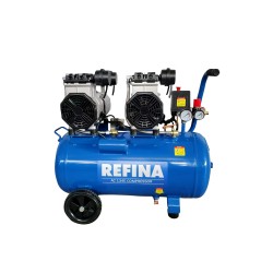The REFINA AC 134E Compressor features an oil-free, direct drive, 1.5hp (1.1kw) dual motor configuration that houses fan-cooled twin cylinder motors and pump units resulting in an efficient, yet powerful 13.4cfm (380L/min) air delivery and combined motor output of 3hp (2.2kw) that significantly reduces the amperage starting current. Thanks to this innovative compact twin motor design, the AC 134E Compressor is easily portable and comes equipped with a 50L capacity air tank which is paired with a durable wheel-mounted design, ideal for a variety of applications that require a high efficiency of continuous air.